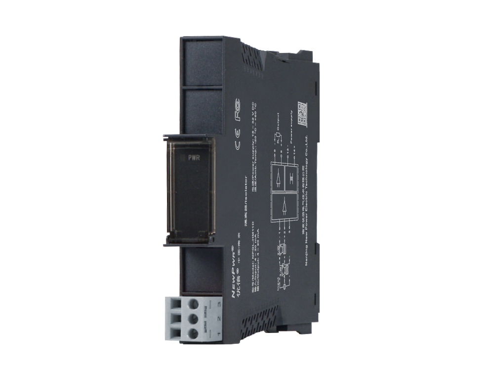 This isolator detects loop current and converts it to 4~20mA signals, and also provides transmitters with power. It allows transmission of HART communication signals. It needs a backplane power supply. The input, output, and power supply are galvanically isolated from each other.