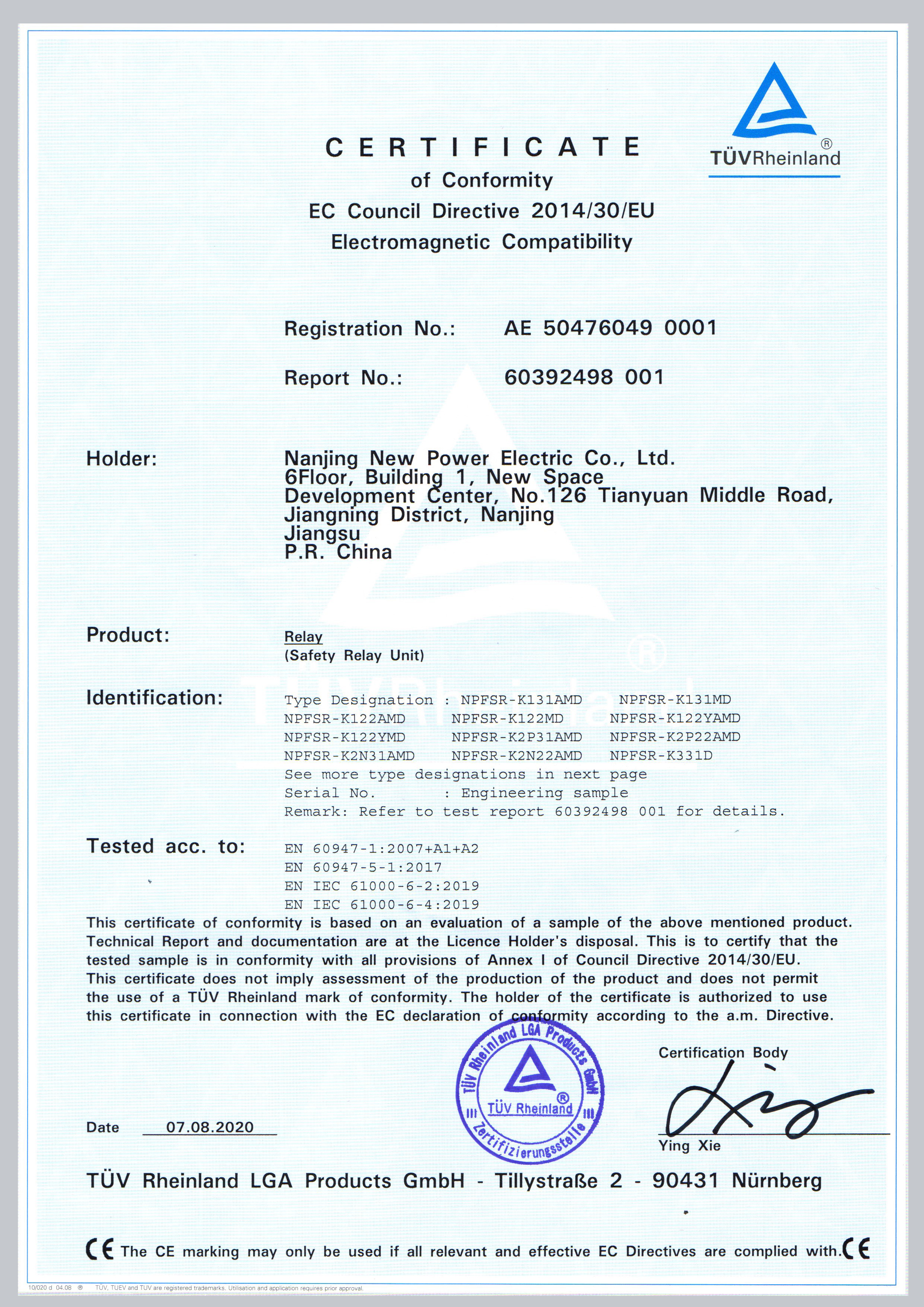 EMC According to IEC/EN 60947, IEC 61326-3-1, IEC/EN 61000-6-2, IEC/EN 61000-6-4