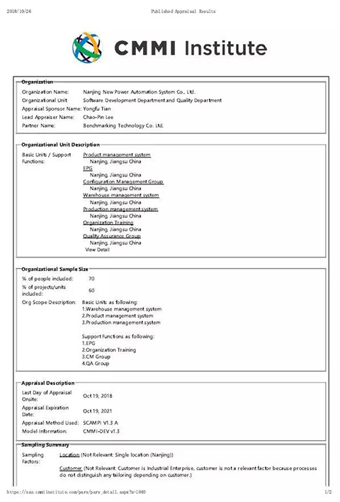 10月19日,在CMMI3級認證結果發(fā)布會上,由SEI認證審核主任評估師向參與評審的項目組成員鄭重宣布:經(jīng)過嚴格的審核和評估,南京優(yōu)倍自動化系統(tǒng)有限公司已經(jīng)達成了CMMI3級目標,成功通過CMMI3級認證!