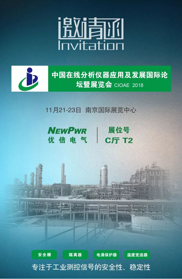 11月21-23日,優(yōu)倍電氣將在本屆展會特裝展出。優(yōu)倍電氣是國內(nèi)工業(yè)防爆儀表領(lǐng)域技術(shù)及市場的重要供應(yīng)商之一,其新C系列隔離式安全柵、隔離器、全新系列電涌保護(hù)器在線監(jiān)測、檢測和分析系統(tǒng)中提供信號防爆、防雷、抗干擾安全等解決方案,用高可靠性與穩(wěn)定性產(chǎn)品助力CEMS行業(yè)。優(yōu)倍在線分析行業(yè)優(yōu)質(zhì)客戶:雪迪龍、西克麥哈克、聚光科技等行業(yè)巨頭齊聚金陵,盛況空前。